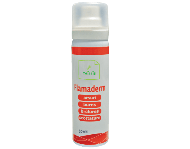 Flamaderm spray este indicat în acordarea primului ajutor în cazul arsurilor superficiale de mică întindere, termice, inclusiv solare și chimice, plăgi și dermabraziuni.